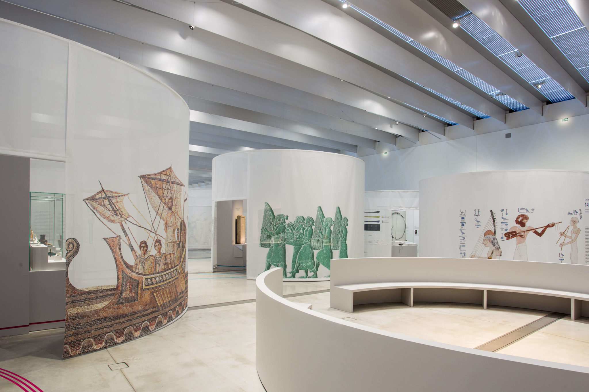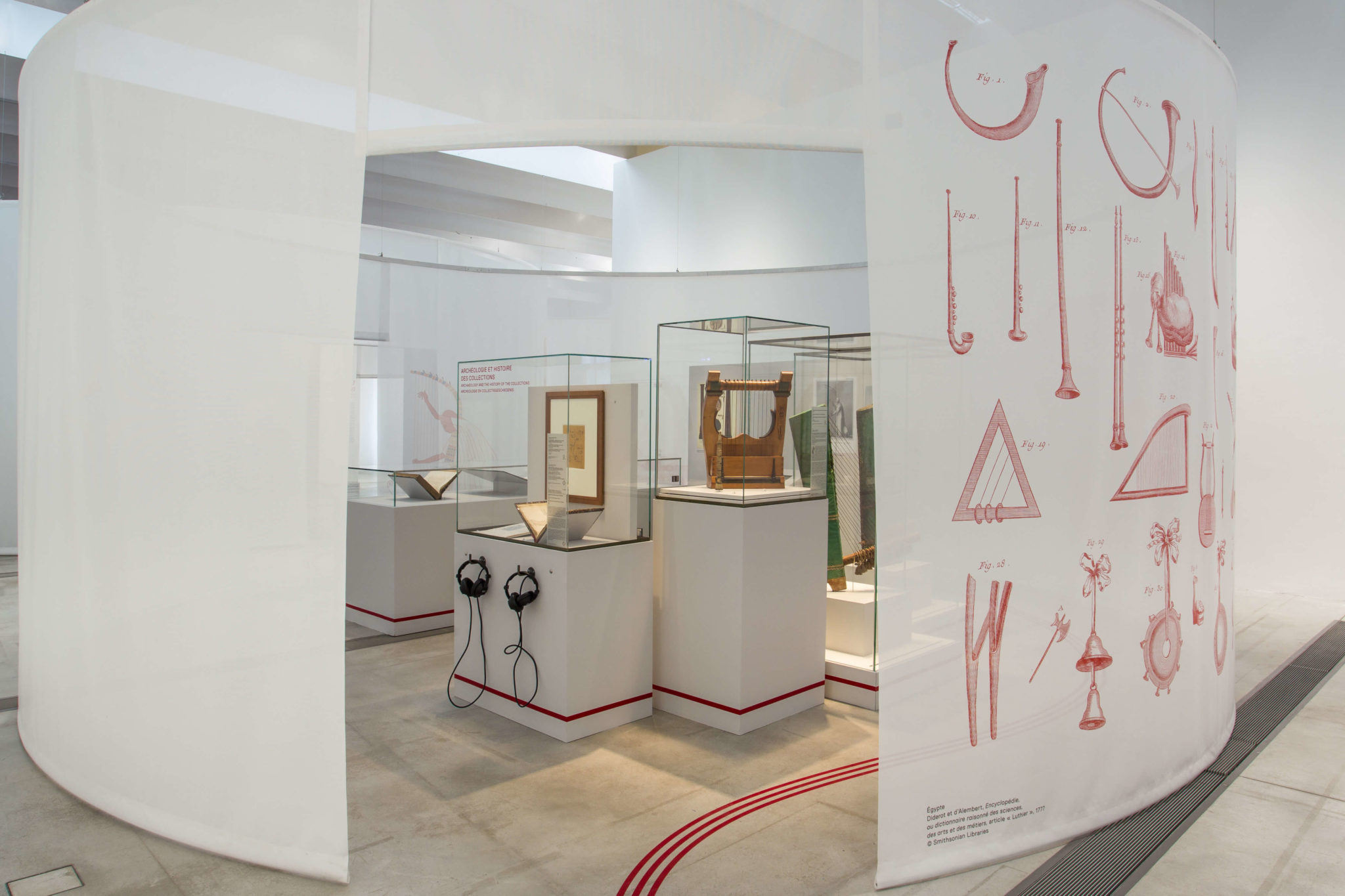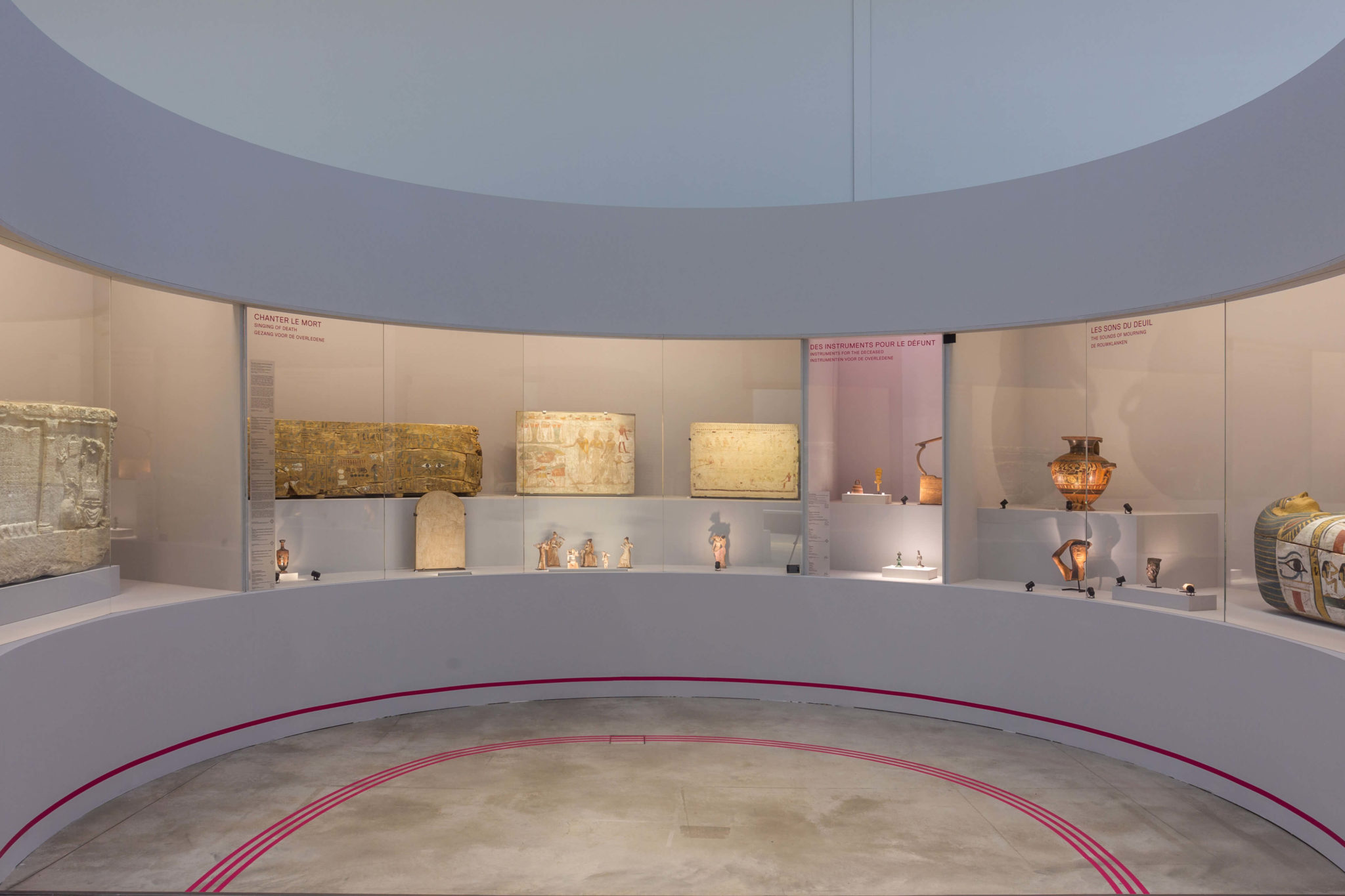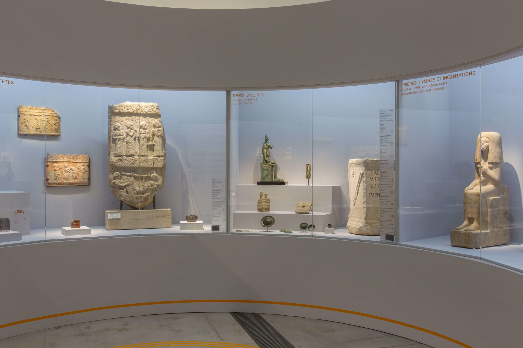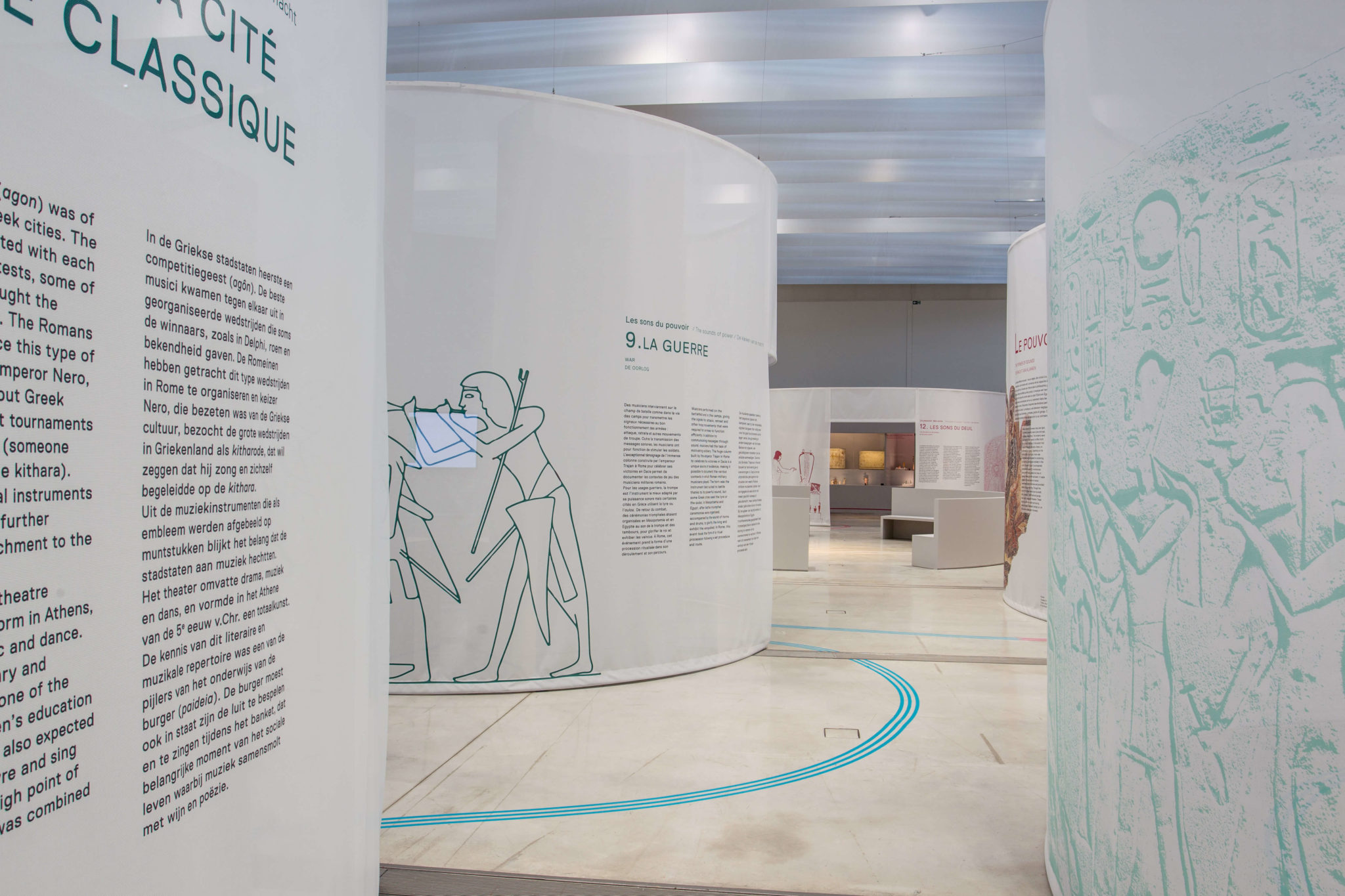 Le parcours de l’exposition intègrait également des dispositifs sonores inédits, permettant d’écouter des reconstitutions de sons d’instruments antiques ainsi que le plus ancien chant connu à ce jour dans le monde.