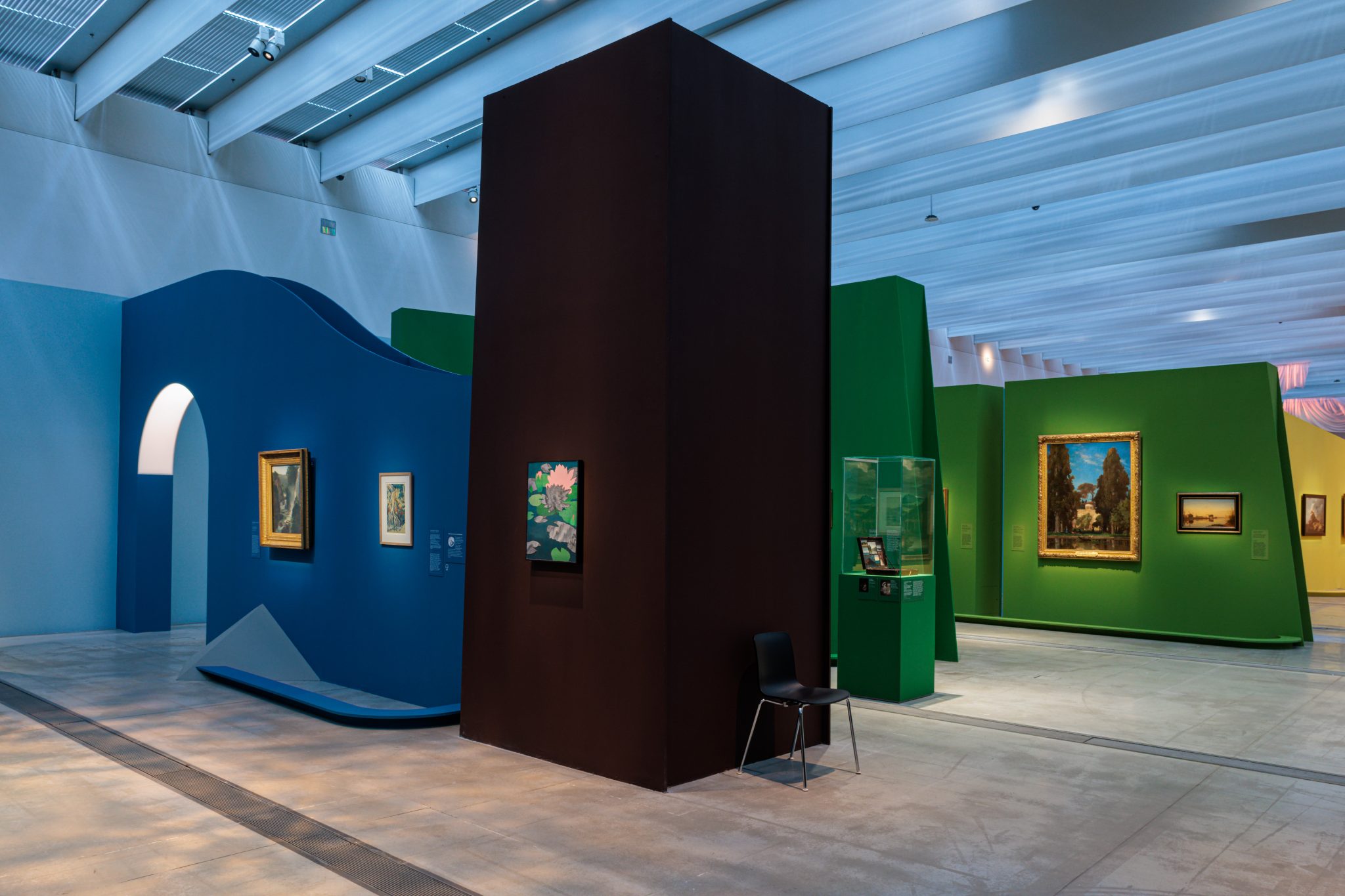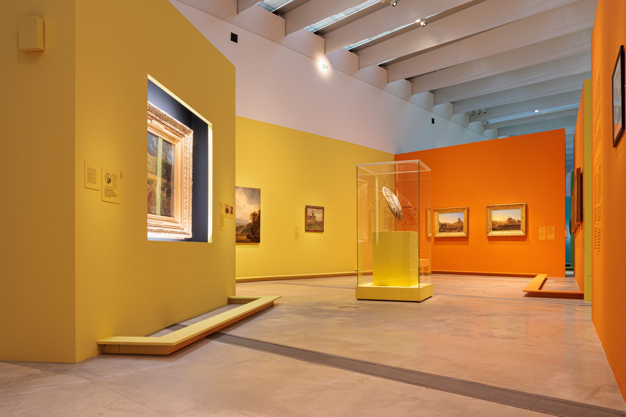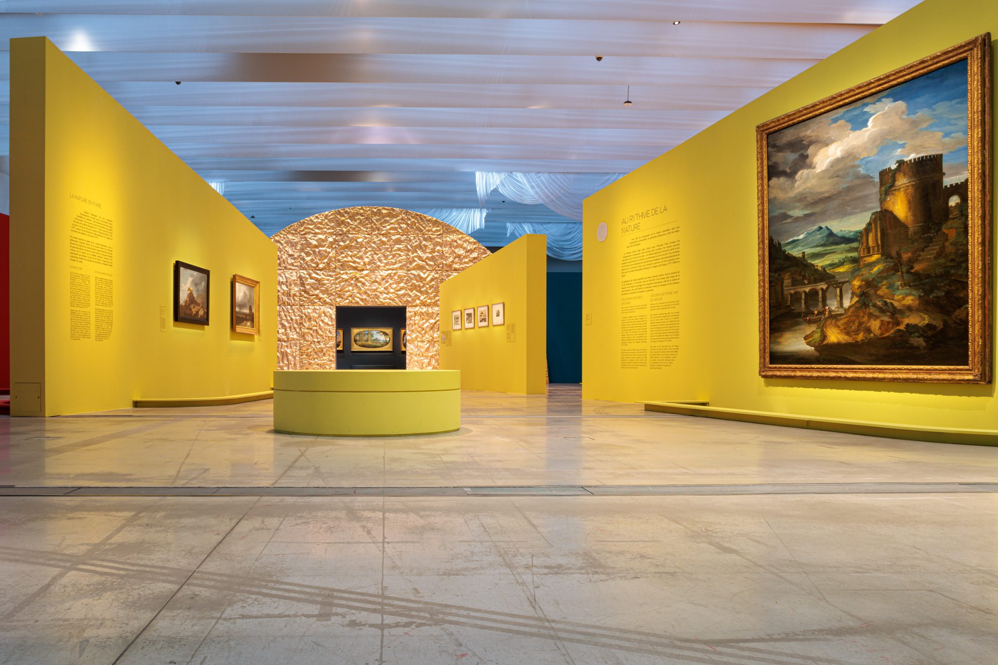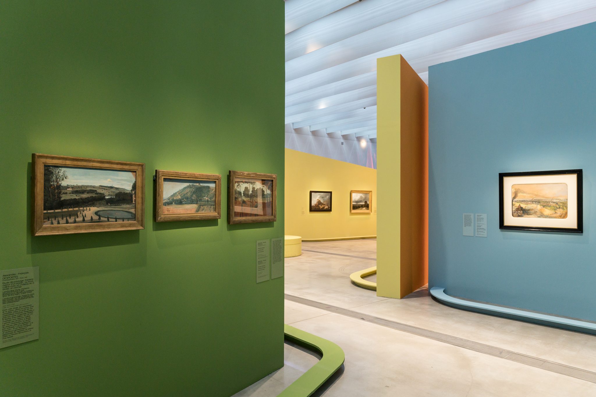 Sensible et immersive, la scénographie est confiée à l’artiste Laurent Pernot et à l’architecte-scénographe du Louvre-Lens, Mathis Boucher. Grâce à des jeux de perspectives et à la présence de sons et de lumières, ils nous invitent à vivre une véritable expérience sensorielle du paysage