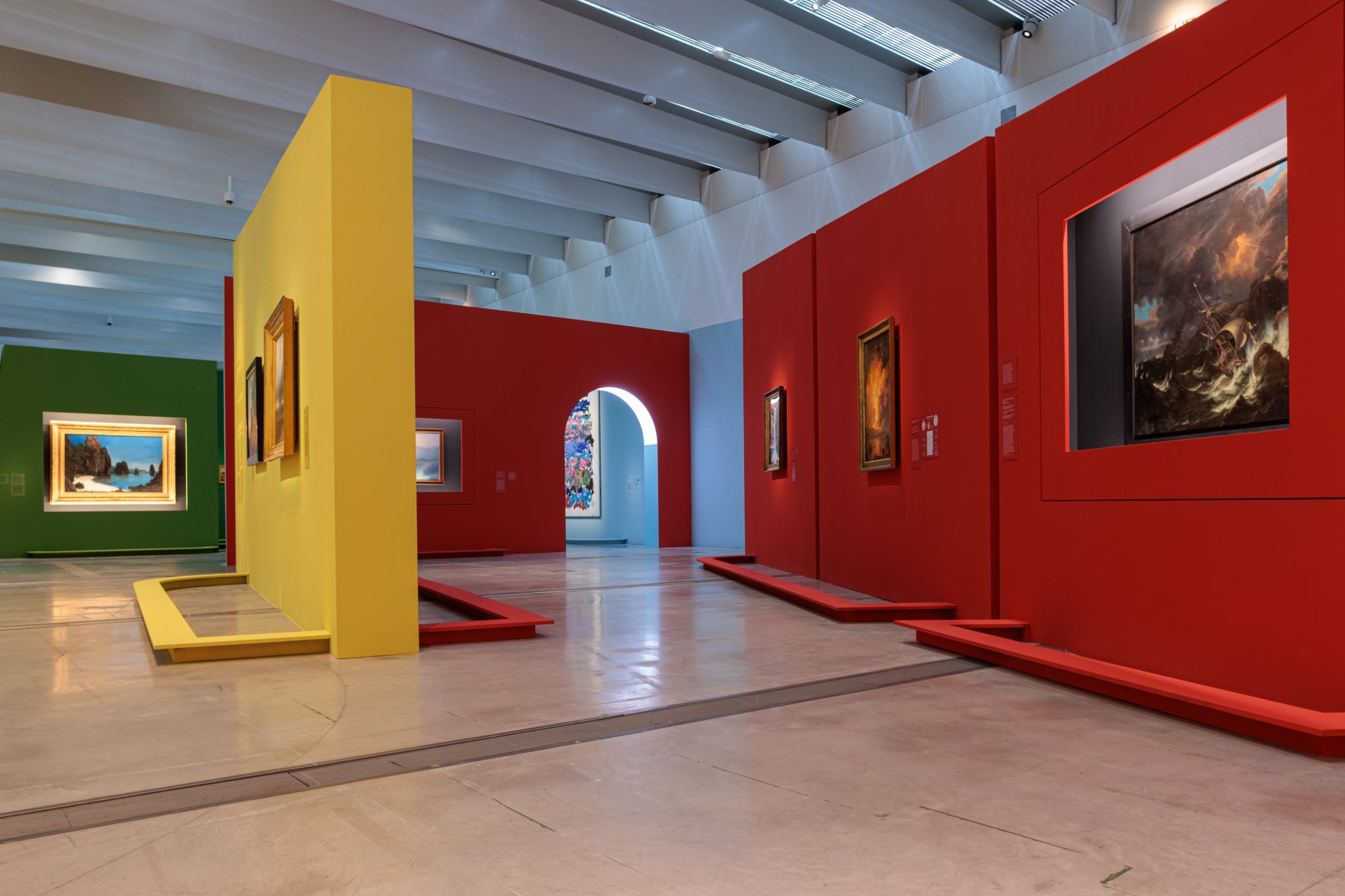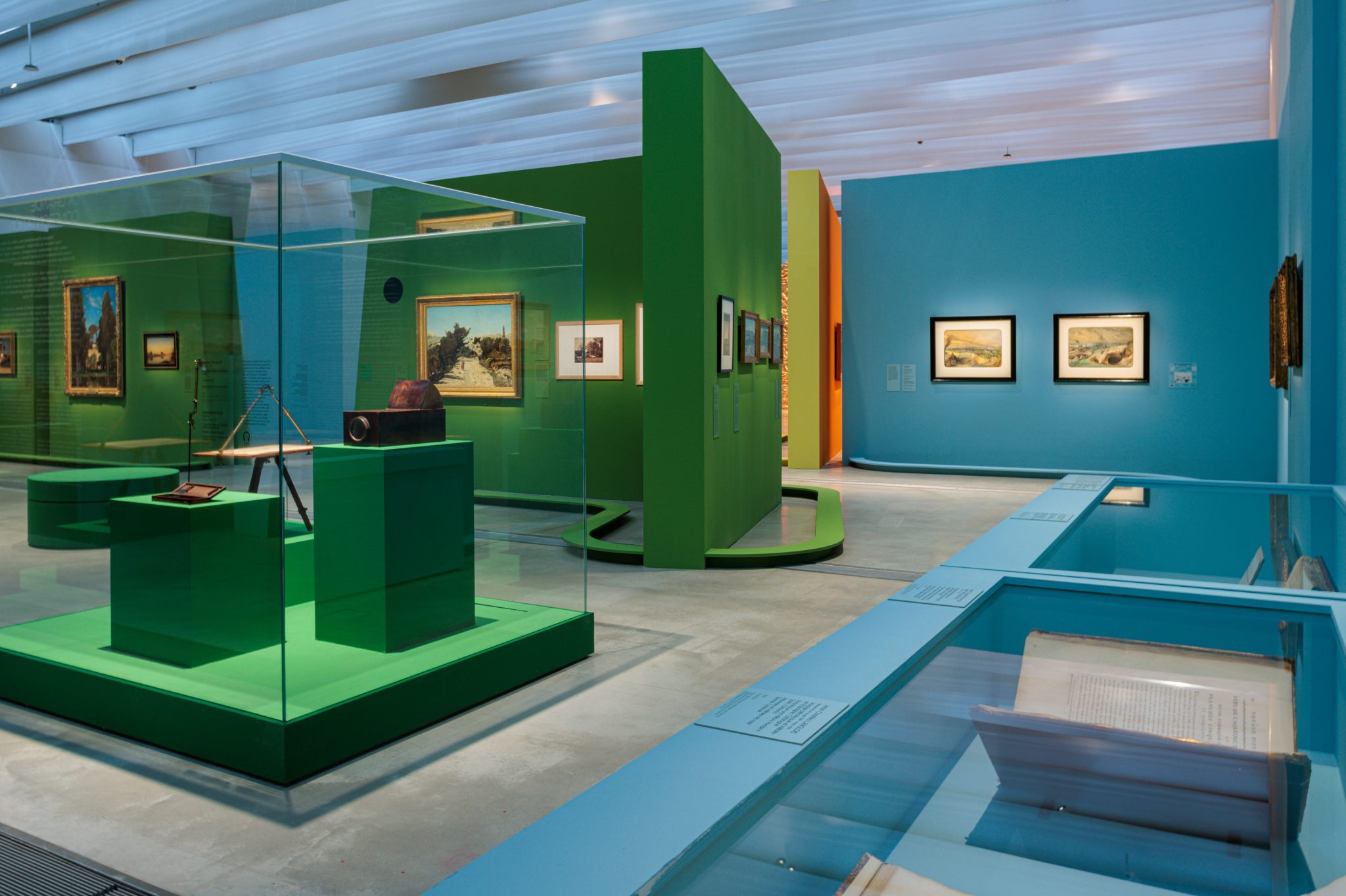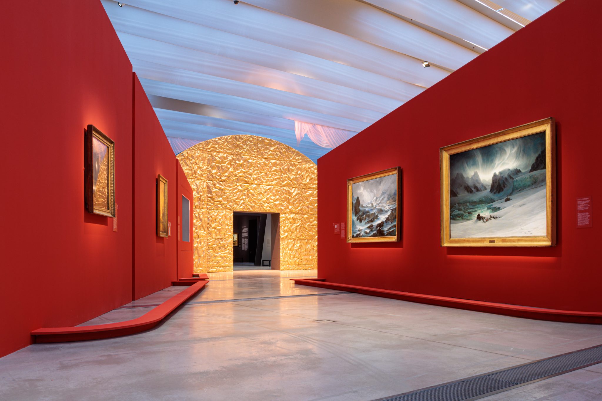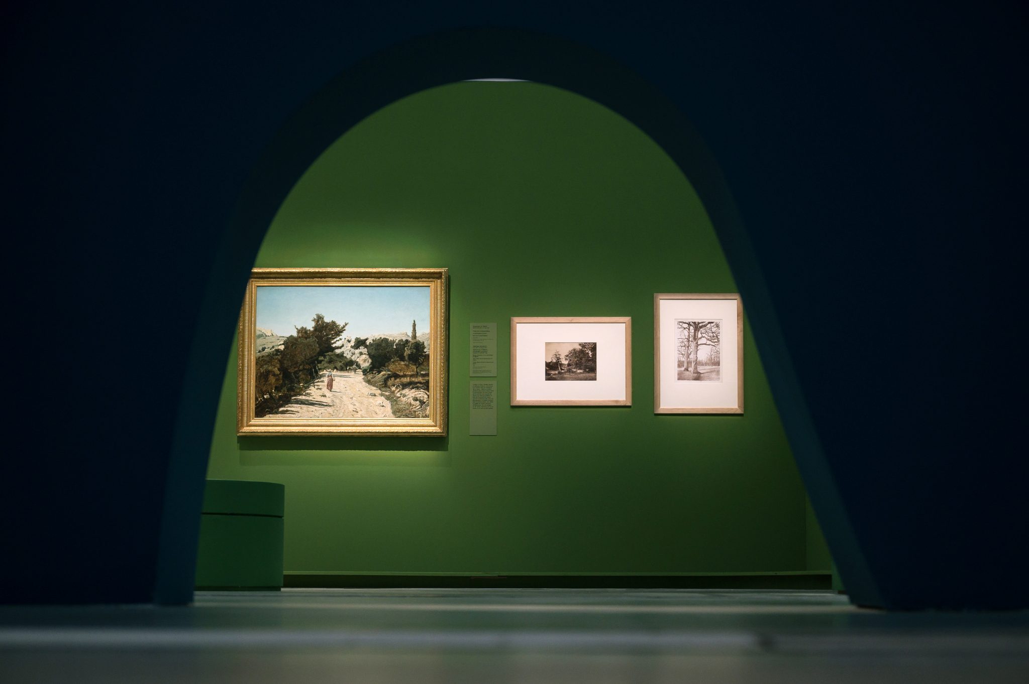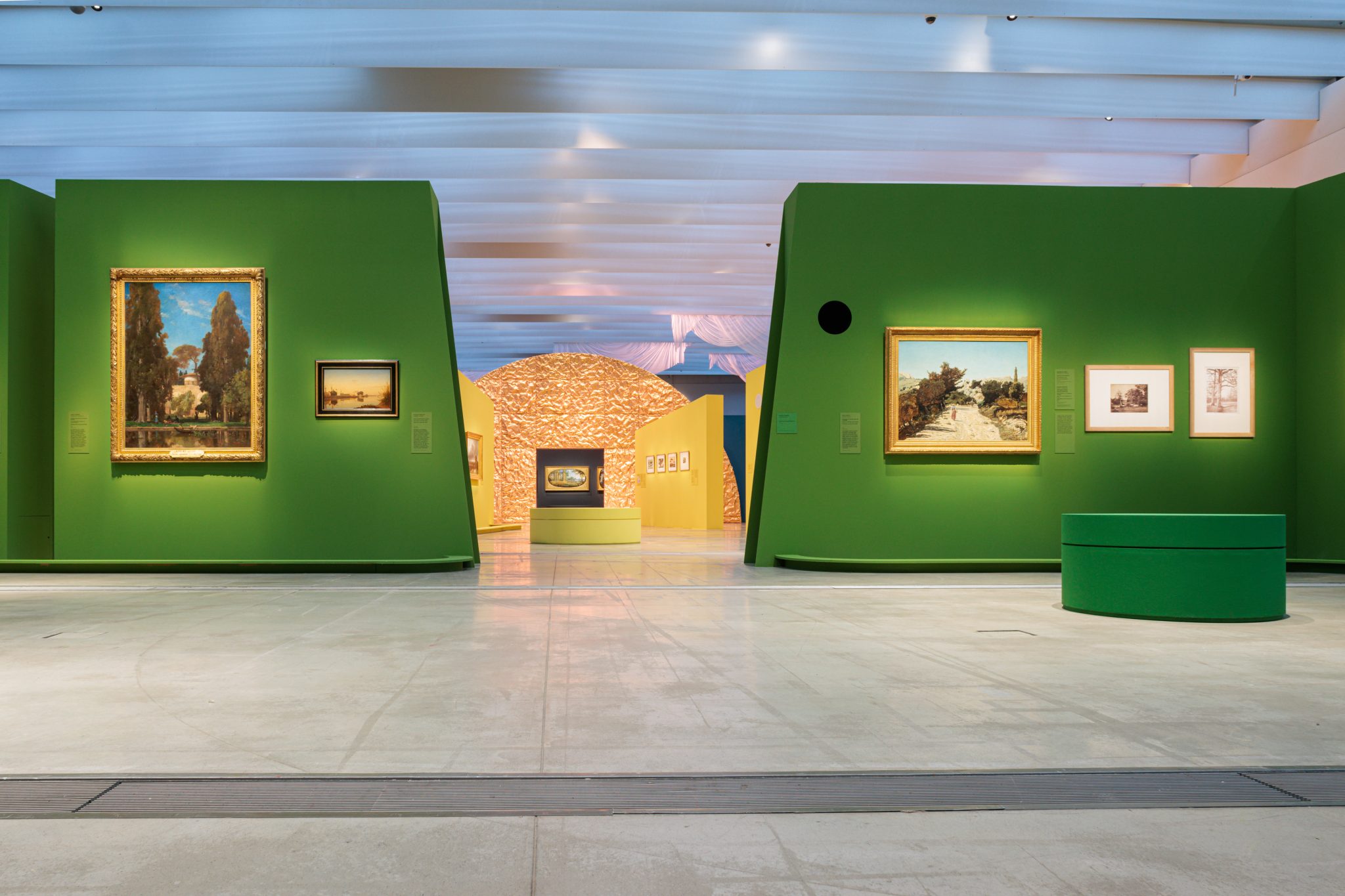 Sensible et immersive, la scénographie est confiée à l’artiste Laurent Pernot et à l’architecte-scénographe du Louvre-Lens, Mathis Boucher. Grâce à des jeux de perspectives et à la présence de sons et de lumières, ils nous invitent à vivre une véritable expérience sensorielle du paysage