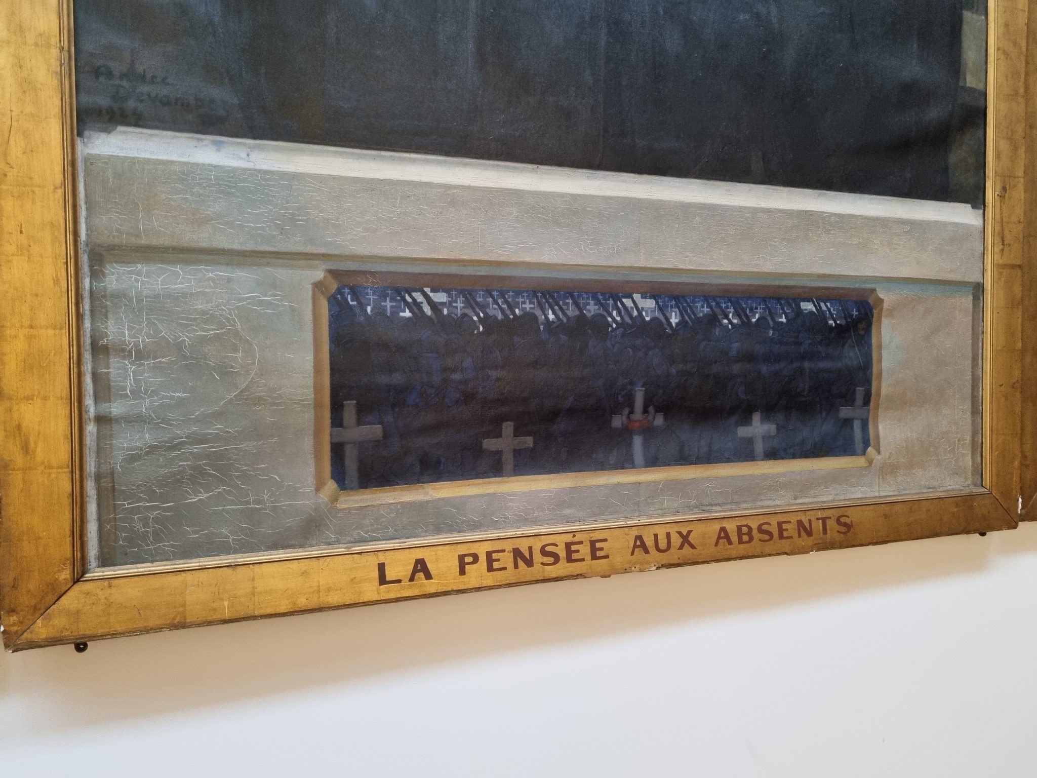 Achetée par le musée de Tourcoing en 1924, La Pensée aux absents a rejoint les cimaises de l’Historial de la Grande Guerre de Péronne depuis quelques années. Peinte par André Devambez, grand Prix de Rome de peinture en 1890, l’œuvre se compose de trois panneaux qui évoquent le souvenir de la Grande Guerre et le deuil.