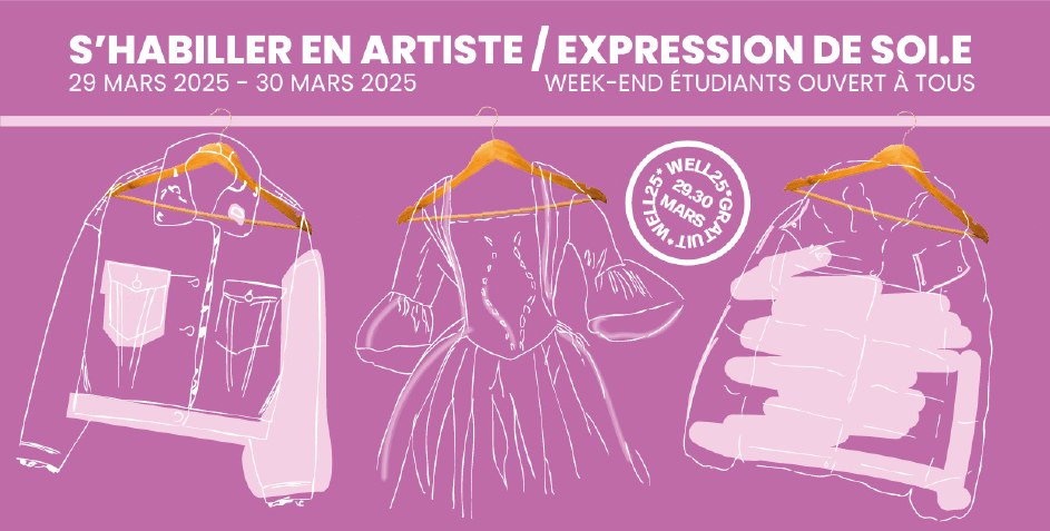 La thématique de cette édition, en lien avec l’exposition « S’habiller en artiste. L’artiste et le vêtement« , est « L’expression de soi.e ». Les étudiants explorent l’expression de l’artiste à travers le vêtement, en relation avec les œuvres de l’exposition et de la Galerie du temps. Le week-end comprend diverses activités comme des créations plastiques et visuelles, lectures, performances, visites, rencontres, jeux, débats, ateliers, conférences, démonstrations, et défilés, les 29 et 30 mars.